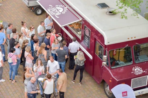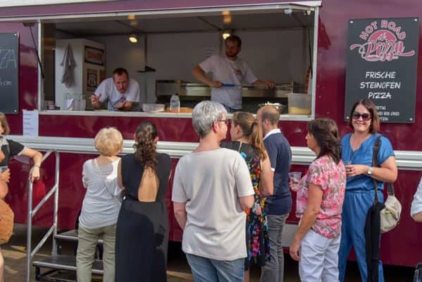 Ein Pizzatruck, ein Käse & Wein-Stand, Grillstände und eine Candybar sorgten für das leibliche Wohl aller Gäste sowie eine Cocktailbar und ein Getränkestand.