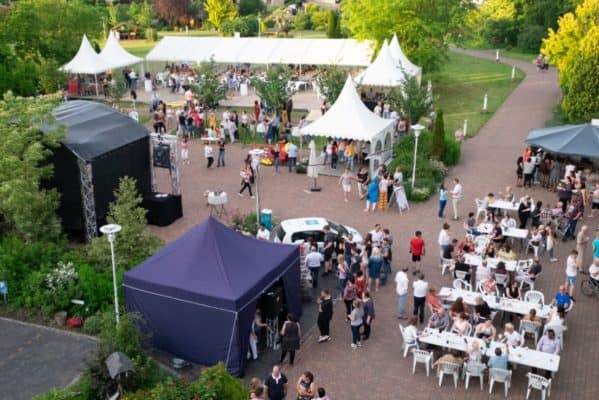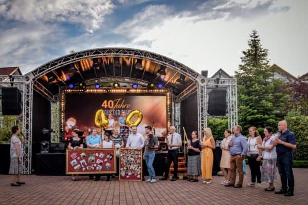 Bei dem Mitarbeiterfest der Hahne Holding feierten die Kolleginnen und Kollegen gemeinsam aus den unterschiedlichen Bereichen. Anlass war das 40-jährige Jubiläum vom „Haus der Ruhe“. Leckere Essensstände und Filme sorgten für gute Stimmung.